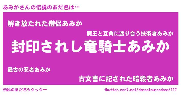 | 意味不明あだ名 | 『住所不定無職あみか(13歳)』 |