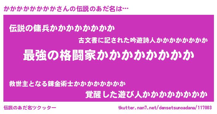 | ヒーロー風カッコイイあだ名 | 『究極戦士カカカカカカカカ』 |