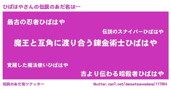 | 女子向けラノベタイトル風あだ名 | 『ひばはや恋絵巻』『闇のひばはや』 |