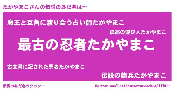 | 意味不明あだ名 | 『たかやまこフォーエバー』 |