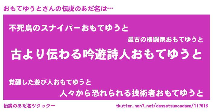| ヒーロー風カッコイイあだ名 | 『ネオオモテユウト』『仮面オモダー』 |