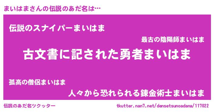 | 意味不明あだ名 | 『永久保存まいはま』『ペロリンまいはま』 |
