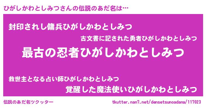 | ヒーロー風カッコイイあだ名 | 『ウルトラひがしかわとしみつマン』 |