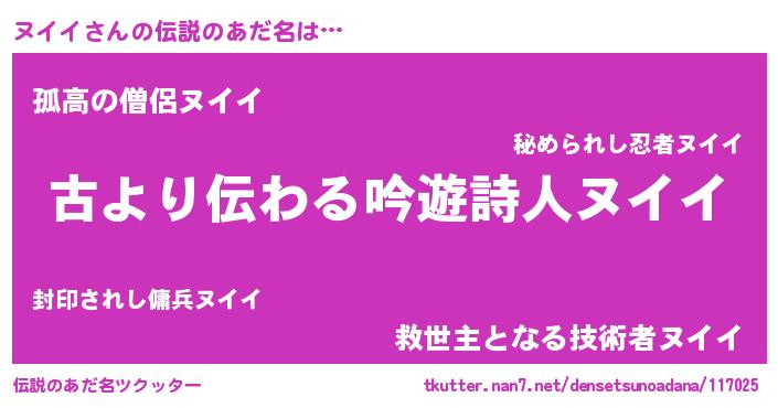 | ヘコむあだ名 | 『ヌイイ(笑)』『ヌイっ子』 |