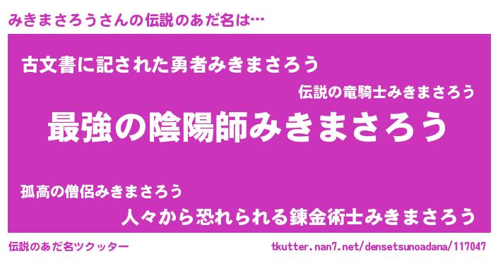 | 意味不明あだ名 | 『みきまさろうフォーエバー』 |