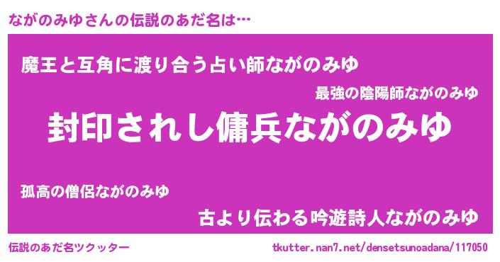 | ヘコむあだ名 | 『ながにゅー』『ながのみゆ(笑)』 |