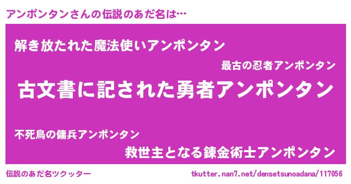 | ヒーロー風カッコイイあだ名 | 『ネオアンポンタン』『幻影騎士アン』 |
