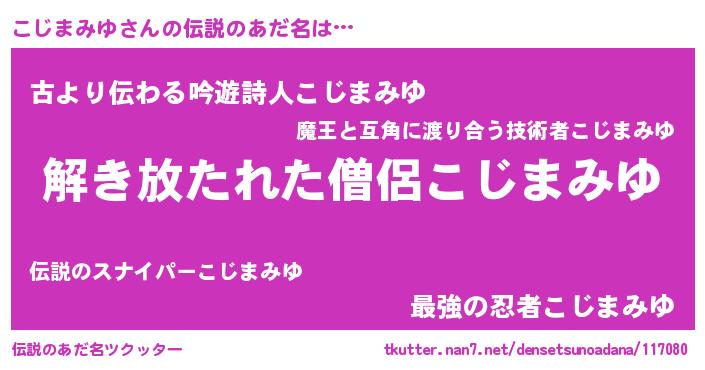 | ヘコむあだ名 | 『こじ太郎』『こじまみゆ(苦笑)』 |