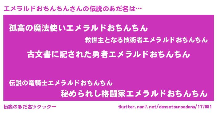 | ヒーロー風カッコイイあだ名 | 『ネオエメラルドオチンチン』 |