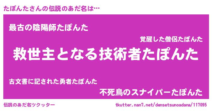 | 男性向けラノベタイトル風あだ名 | 『ノーゲーム・ノータポンタ』 |