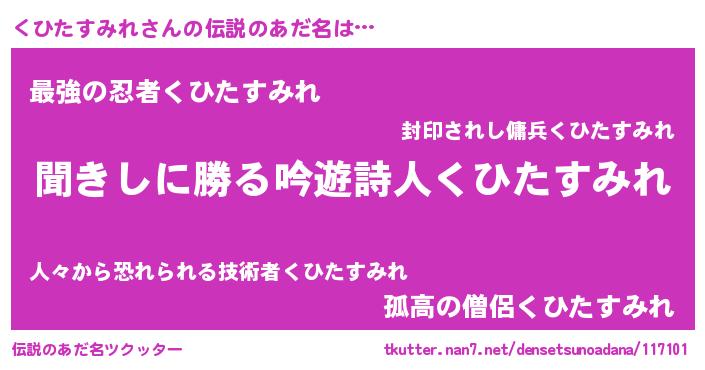 | 意味不明あだ名 | 『自称くひたすみれ』 |