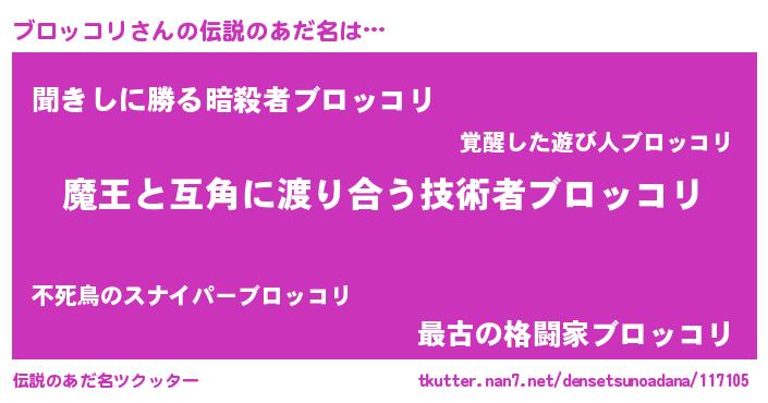 | ヒーロー風カッコイイあだ名 | 『愛の使者ブロッコリ』『ネオブロッコリ』 |