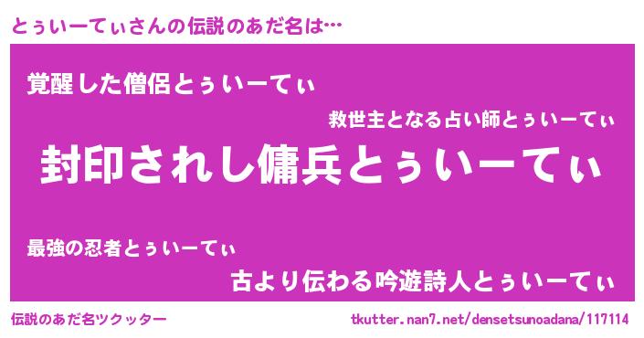 | 胡散臭い通販商品みたいなあだ名 | 『億万長者になれる水晶球…その名も「とぅいーてぃ」』 |