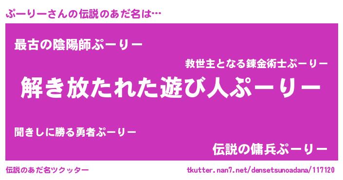 | 男性向けラノベタイトル風あだ名 | 『ダンジョンにぷーりーを求めるのは間違っているだろうか』 |