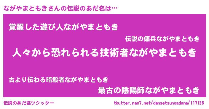 | 男性向けラノベタイトル風あだ名 | 『緋弾のナガヤマトモキ』 |