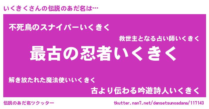 | 意味不明あだ名 | 『いくきくフォーエバー』『自称いくきく』 |