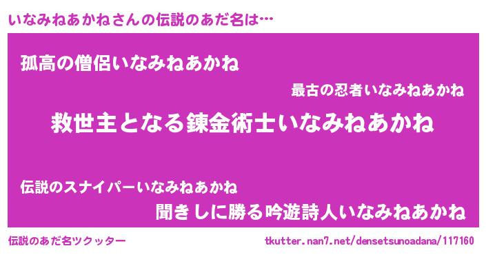 | ヒーロー風カッコイイあだ名 | 『慈愛の使者いなみねあかね』 |