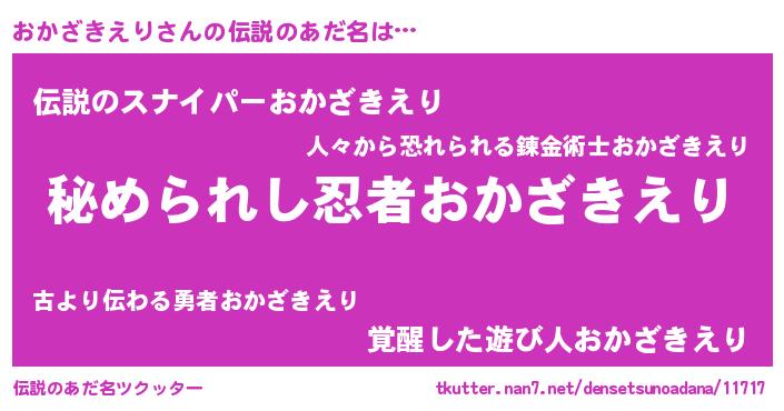 | 意味不明あだ名 | 『自称おかざきえり』 |