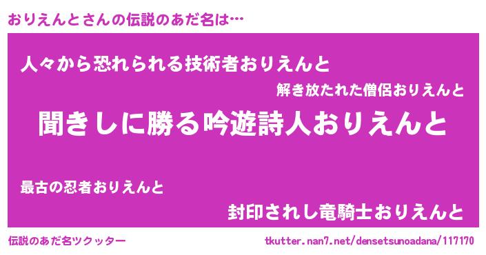| ヘコむあだ名 | 『おりえんと(小並感)』『おりもー』 |