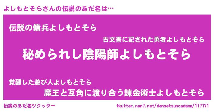 | ファンタジー風あだ名 | 『エターナルヨシモトソラー』 |