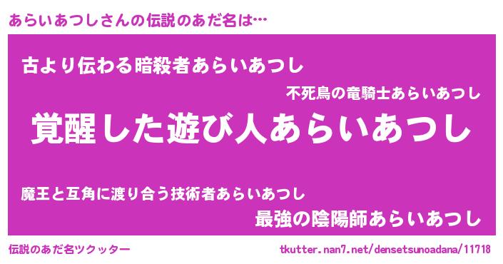 | ヒーロー風カッコイイあだ名 | 『天弓騎士アラ』『ネオアライアツシ』 |