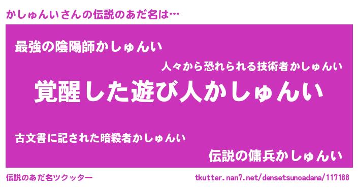 | 男性向けラノベタイトル風あだ名 | 『この素晴らしい世界にかしゅんいを!』 |