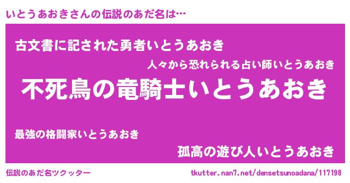 | 意味不明あだ名 | 『たけのこ科いとうあおき属』 |