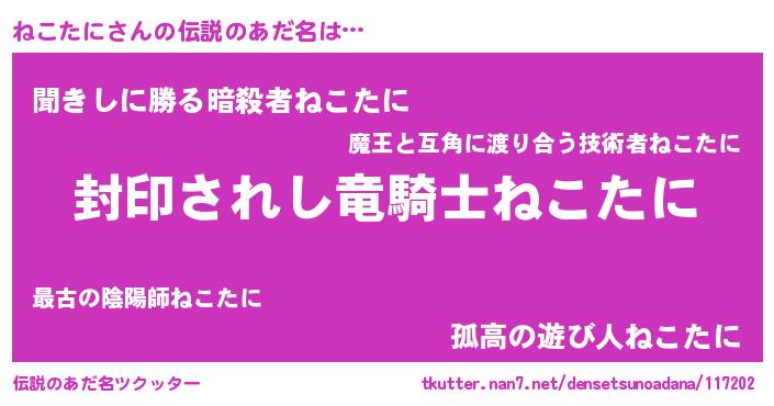| 男性向けラノベタイトル風あだ名 | 『ネコタニアートオンライン』 |