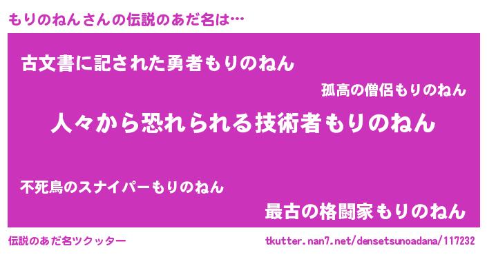 | 肩書あだ名 | 『もりのねん助教授』『もりのねん中将』 |