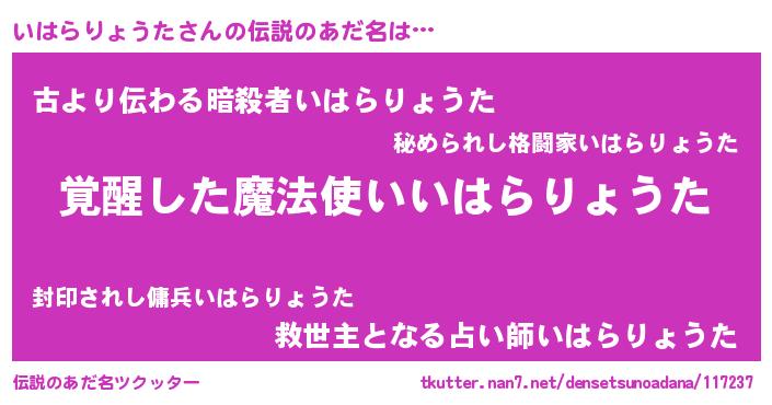 | 女子向けラノベタイトル風あだ名 | 『いはらりょうた様がみてる』 |