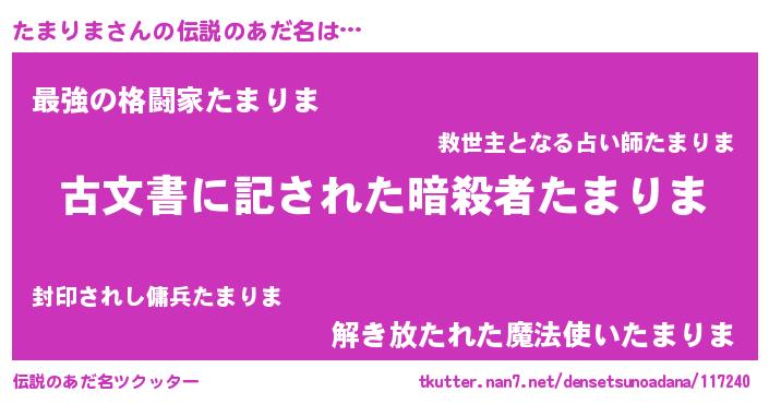 | ヒーロー風カッコイイあだ名 | 『仮面タマダー』『ネオタマリマ』 |