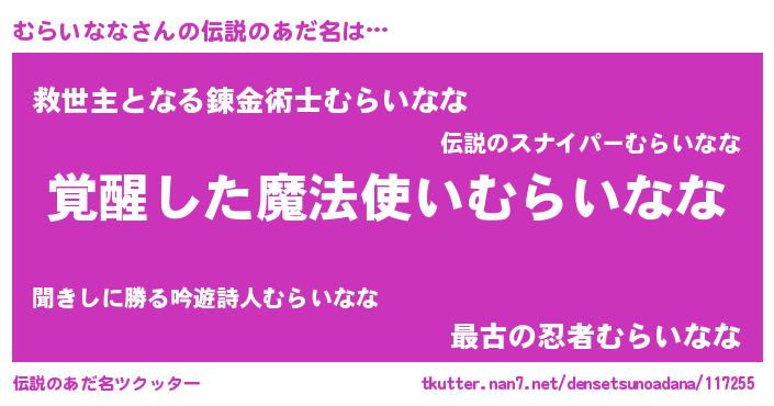 | 男性向けラノベタイトル風あだ名 | 『この素晴らしい世界にむらいななを!』 |