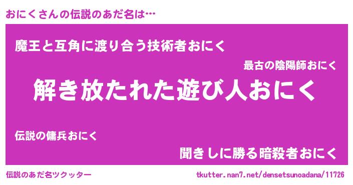 | 意味不明あだ名 | 『住所不定無職おにく(74歳)』『自称おにく』 |