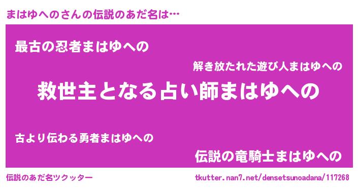 | ヒーロー風カッコイイあだ名 | 『仮面マハダー』『友情の使者まはゆへの』 |