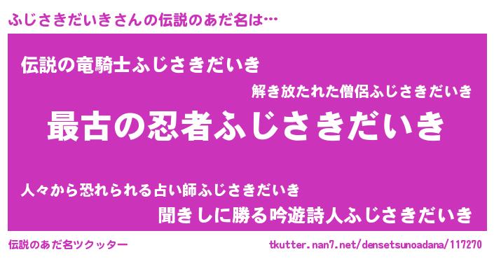| 意味不明あだ名 | 『ふじさきだいきフォーエバー』 |