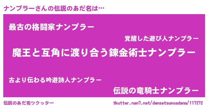 | ヒーロー風カッコイイあだ名 | 『仮面ナンダー』『慈愛の使者ナンプラー』 |