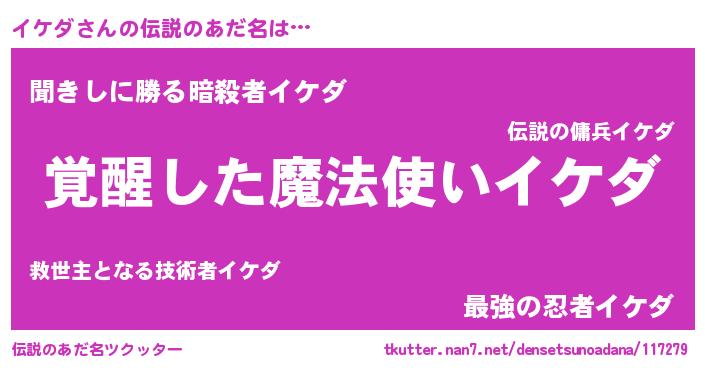 | 男性向けラノベタイトル風あだ名 | 『イケダの嫁は女の子じゃないと思った?』 |