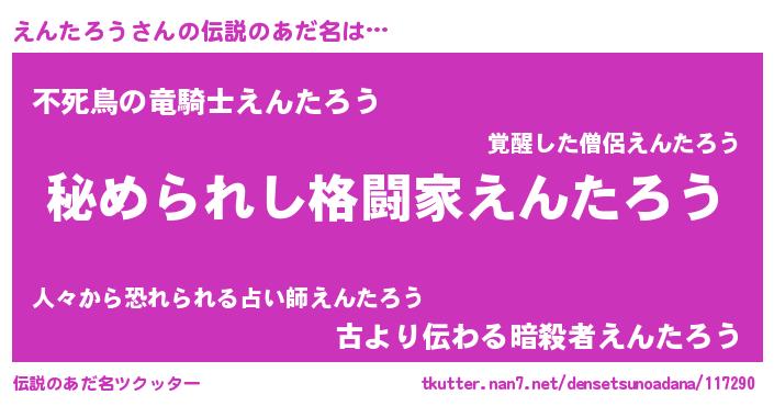 | ファンタジー風あだ名 | 『ゼエントゥ』『エターナルエンタロウー』 |