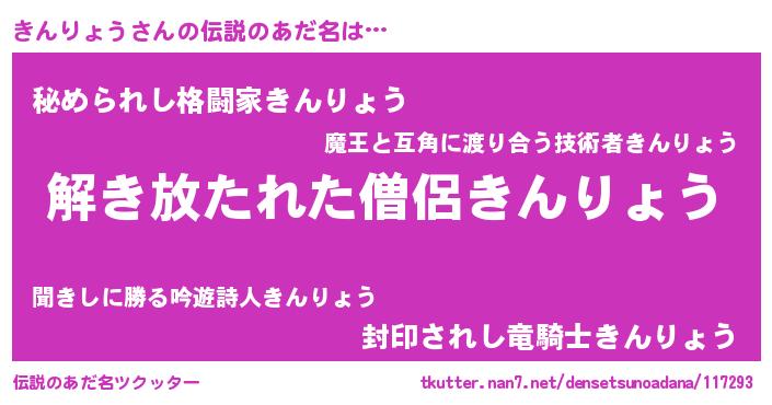 | 男性向けラノベタイトル風あだ名 | 『魔弾の王ときんりょう』 |