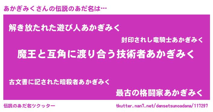 | 意味不明あだ名 | 『眠気覚ましガムあかぎみく味』 |