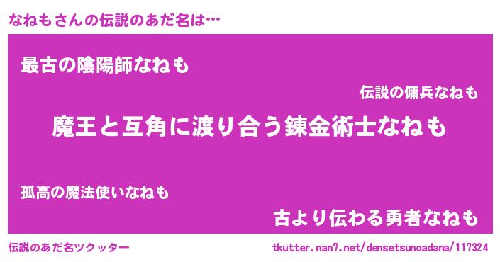 | ヒーロー風カッコイイあだ名 | 『サイバー戦士ナネモ』『ネオナネモ』 |