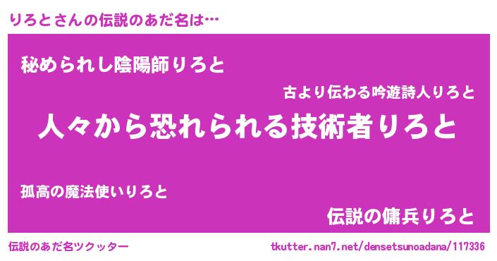 | 意味不明あだ名 | 『眠気覚ましガムりろと味』『自称りろと』 |