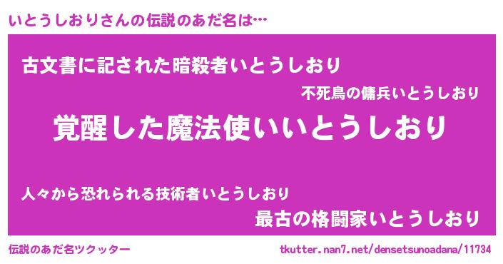 | ヒーロー風カッコイイあだ名 | 『幻影騎士イト』『究極戦士イトウシオリ』 |