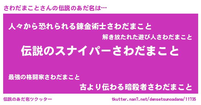 | 胡散臭い通販商品みたいなあだ名 | 『必ず成功する霊験あらたかなお札…その名も「さわだまこと」』 |