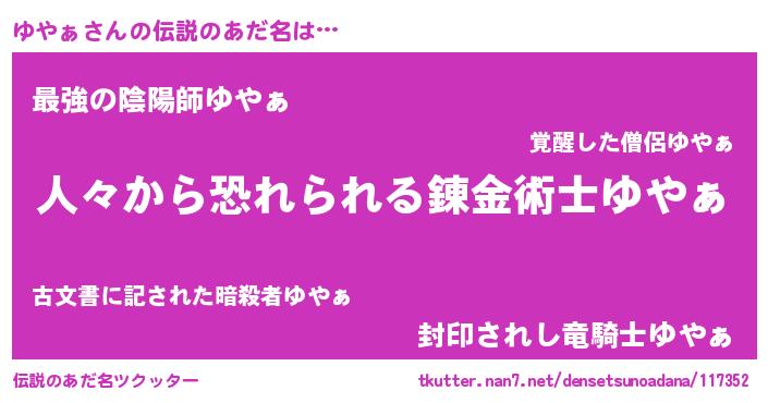 | ヒーロー風カッコイイあだ名 | 『正義の使者ゆやぁ』『最強戦士ユヤァ』 |
