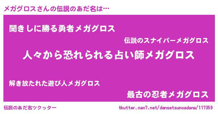 | 意味不明あだ名 | 『自称メガグロス』『永久保存メガグロス』 |