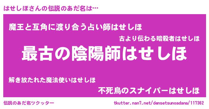 | ヒーロー風カッコイイあだ名 | 『ウルトラはせしほマン』『ネオハセシホ』 |