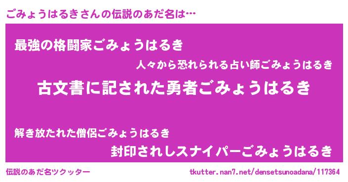 | 意味不明あだ名 | 『永久保存ごみょうはるき』 |