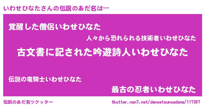 | ヘコむあだ名 | 『いわせひなた(笑)』『いわっ子』 |