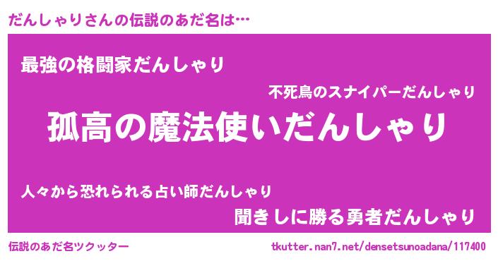 | 胡散臭い通販商品みたいなあだ名 | 『信頼と実績のサプリメント…その名も「だんしゃり」』 |